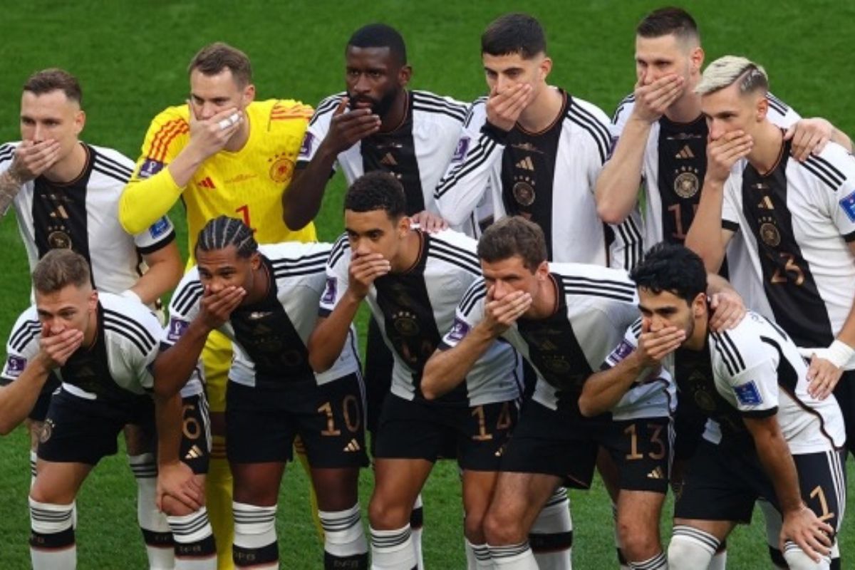 Η συμβολική φωτογραφία των Γερμανών ποδοσφαιριστών, πριν από την σέντρα από τα γήπεδα του Κατάρ με το χέρι στο στόμα.